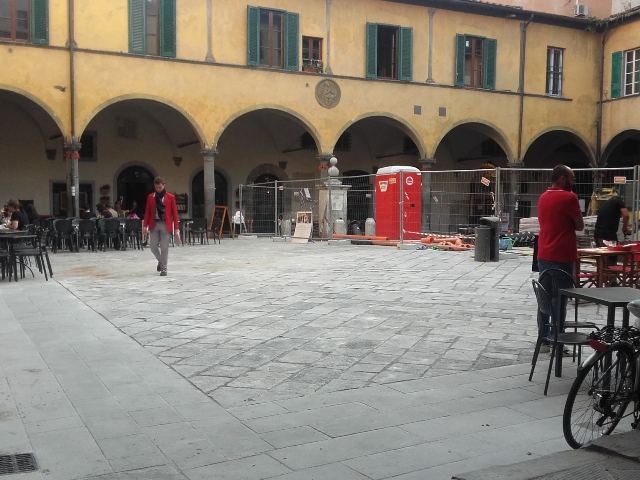 Piazza delle Vettovaglie, dopo la lastricatura del camminamento sotto il loggiato, già completati anche i lavori di ripavimentazione su metà della piazza che da oggi è stata riaperta alla fruizione. Continua l’importante intervento di riqualificazione e decoro urbano, eseguito dagli operai della ditta Co.Ve.Ma. Srl, aggiudicataria dei lavori, per un investimento di 455 mila euro (dopo il ribasso di gara), quasi interamente coperto dal finanziamento della Fondazione Pisa di 430mila euro. L’assessore ai lavori pubblici: «L’intervento procede e negli ultimi giorni c’è stata un’accelerata grazie all’impegno della ditta. Adesso, dopo la riapertura di metà piazza, l’obiettivo è di riaprire anche l’altra metà per la festa di San Ranieri».