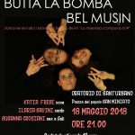 Venerdì 18 Maggio ore 21:00 a San Miniato. "Butta la bomba bel musin", ironica e irriverente rappresentazione molto liberamente tratta da "La misteriosa scomparsa di W" di Stefano Benni. Lo spettacolo, patrocinato dal Comune di San Miniato, sarà un'occasione per raccogliere fondi per l'associazione Frida, che sostiene donne vittime di violenza, nell'ambito dei festeggiamenti per il decennale. Con Katia Frese, Susanna Crociani, Ilaria Savini.