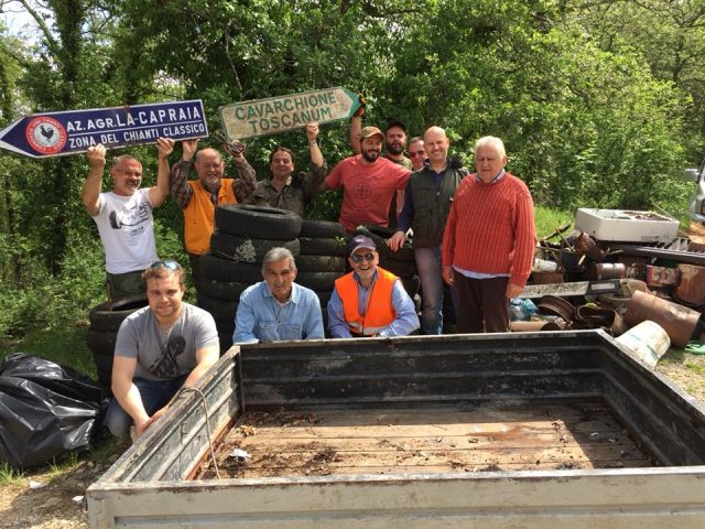 Domenica scorsa sono stati raccolti quintali di rifiuti nei boschi di Gaiole in Chianti. Ha fatto centro la prima giornata ecologica promossa dalle 5 squadre di caccia al cinghiale, in collaborazione con il Comune e con Sei Toscana. Tra i cespugli sono stati rinvenuti molti oggetti, alcuni anche bizzarri, pezzi d’arredamento pesanti che per essere trasportati hanno richiesto la collaborazione di tutti. A fine giornata ammassati a bordo strada, c’erano oltre 90 copertoni, un frigorifero e altri vecchi elettrodomestici arrugginiti, delle persiane, una cucina a legna, insegne, sedie e tavoli, bottiglie di vetro, plastica e tante cartacce.