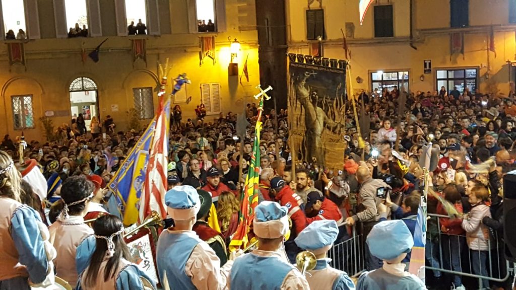 Poi il protagonista è stato lui, il cencio. Luci basse in piazza, rullo di tamburi e squilli di chiarine.