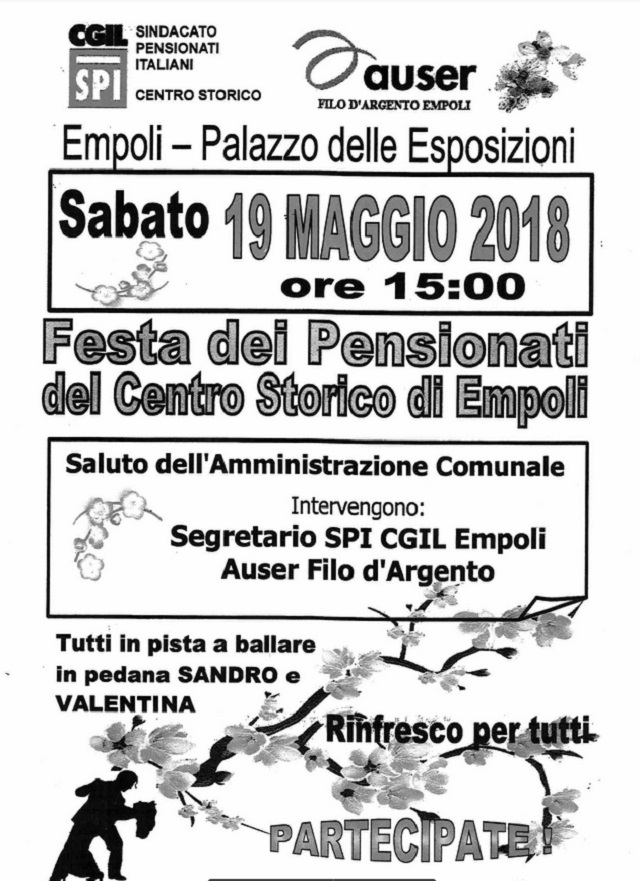 Sabato 19 maggio al Palazzo delle Esposizioni di Empoli si terrà la Festa dei Pensionati del centro storico di Empoli. Ecco la locandina