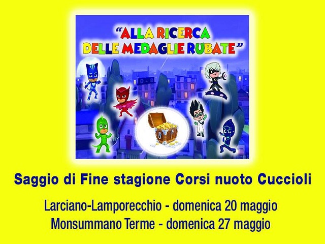 Il 20, 26 e 27 maggio, alle piscine comunali di Monsummano e quelle intercomunali di Larciano-Lamporecchio, si svolgerà il Saggio e la Rassegna finale dei Corsi di nuoto dell'ASD Nuoto Valdinievole. Circa 1150 giovani corsisti (dai 3 ai 15 anni), tramite una divertente rappresentazione per i bambini da 3 a 5 anni e una rassegna di nuoto per i ragazzi dai 6 anni in su, dimostreranno gli obiettivi tecnici acquisiti durante i corsi. Un evento non solo di festa: con la manifestazione intitolata “12° Memorial Elisa”, in memoria di un'atleta termale scomparsa anni fa a causa di un male incurabile, si vuole cogliere l'occasione per sensibilizzare la raccolta di fondi per la ricerca contro il medulloblastoma. La manifestazione è organizzata con la collaborazione delle sedi locali AVIS per sensibilizzare ulteriormente alla donazione del sangue. Tutti i corsisti saranno premiati con la medaglia e il diploma di partecipazione al saggio e alla rassegna, il brevetto della Scuola Nuoto Federale con indicati gli obiettivi raggiunti durante il corso di nuoto, così da certificare la qualità del lavoro svolto dall’Associazione Nuoto Valdinievole e un gadget offerto dall'AVIS. Durante le rassegne i parchi degli impianti estivi saranno aperti gratuitamente (balneazione esclusa) per gli spettatori ed i corsisti partecipanti alla manifestazione.