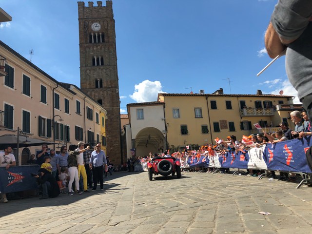 Un paese intero vestito a festa che ha salutato gli oltre 400 equipaggi della Mille Miglia. Altopascio ha accolto la corsa più bella del mondo con una gioia e un impegno inediti A salutare l’arrivo degli equipaggi, inoltre, la rievocazione medievale, organizzata dal gruppo storico Casteldurante di San Ginese. Grande soddisfazione da parte del sindaco Sara D’Ambrosio: «Ci siamo preparati al meglio per accogliere, festeggiare e rendere omaggio a questo grande evento unico nel suo genere e  soprattutto per noi, visto che fino ad oggi la Mille Miglia non era mai passata da Altopascio. Abbiamo realizzato quest’evento grazie al contributo di tutti: delle scuole, dei volontari, delle associazioni che hanno dato davvero il massimo, della Polizia Municipale, del comitato trattori d’epoca Tarabori, dei club motoristici, Balestrero e Kursaal, degli sponsor che ci hanno supportato e ovviamente dell’ACI Lucca. Un paese intero, dai commercianti ai cittadini, era tutto qui, nel nostro bellissimo centro storico».