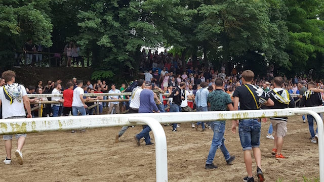 Il Palio di Fucecchio 2018 passerà alla storia per un momento molto concitato, in cui si è scatenata una rissa tra i contradaioli di Ferruzza e Cappiano. Le contrade sono storicamente rivali ed erano impegnate nella seconda batteria. Durante la corsa, Cappiano ha limitato Ferruzza e il favorito Unico de Aighenta. La contrada bianconera è rimasta indietro ed è stata eliminata assieme ai rivali. Ne è nato un parapiglia, i tifosi ferruzzini sono scesi in Buca ed è volato di tutto, dai sassi agli ombrelli. Sono intervenute le forze dell'ordine, ma dalla parte opposta Botteghe e Borgonovo hanno iniziato un'altra faida. Anche in quel caso è stato necessario l'intervento della security. Non si escludono multe per qualche tifoso o per le singole contrade. Il 118 ha fatto sapere che non ci sono stati feriti. Un'altra rivalità ha segnato la fine del Palio: a chiusura, c'è stato un contatto tra i contradaioli di Porta Bernarda e Porta Raimonda, entrambe nella batteria finale. È servito attivare il cordone antisommossa dei carabinieri per proteggere la parte della piazza dalla quale sarebbero usciti fantini e cavalli. Alcuni hanno lamentato spintoni e cazzotti. Una chiusura non felice su un Palio a detta di molti troppo teso.