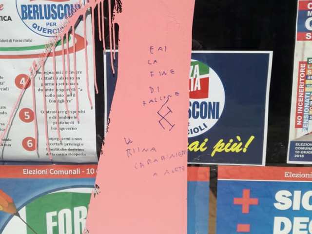 Atti vandalici alla sede di Forza Italia a Campi Bisenzio: lo rende noto la candidata del centrodestra Maria Serena Quercioli. Un getto di vernice rosa sulle vetrate dell'edificio, alcune scritte ingiuriose e minacce di morte come 'Farai la fine di Falcone', oltre a un cero funebre a terra. Questo il commento della candidata sindaco su Facebook: "Il gruppo di Forza Italia è in consiglio dal 1995: in questi anni è stato un tassello della democrazia a Campi e dalla legislatura 2008/2013, per poi proseguire in quella attuale, i consiglieri di opposizione si sono impegnati su tutti i fronti. Tanto che negli ultimi 5 anni sono stati presentati da parte loro 500 atti in consiglio. La scelta del candidato sindaco per le amministrative del 10 giugno si è orientata su una figura al di fuori dei partiti e per me, dopo 25 anni di grande lavoro sulla città, è stato un onore e un impegno non indifferente che però ho accettato con coraggio ed entusiasmo. Per una Campi migliore. Testardaggine, coraggio e determinazione sono le mie caratteristiche di cui ho anche già parlato. Forza Italia è un partito della coalizione che per la prima volta si è riunita intorno alla mia figura. Quindi: perchè prendersela con la sede di Forza Italia? È una sede finanziata e curata faticosamente dai militanti di Forza Italia. Se un candidato sindaco non piace non si vota, se ad un candidato si vuole contestare qualcosa si viene nelle assemblee, agli incontri....e si discute. I più estremisti o supporter sfegatati degli altri candidati attaccano sui social. Dispiace profondamente per la sede, per i manifesti, per vedere oltraggiato in questo modo il lavoro gratuito delle persone. I manifesti strappati è un fenomeno sempre esistito ma i vandalismi non hanno mai fatto parte delle campagne elettorali a Campi Bisenzio. Il sorteggio per le postazioni mi ha dato il numero 1 e già questo lo ritengo un buon punto di partenza (un segno del destino?) e noi, tutti insieme, 96 candidati più il sindaco si va avanti. Forza Italia sa reagire grazie a tutti i suoi instancabili consiglieri e candidati. E io continuo a ripetere ciò che ho detto venerdì sera nel teatro della Pieve: "Sono come il giro d'Italia visto che siamo a maggio e la Gazzetta dello Sport: tutto il rosa della vita".