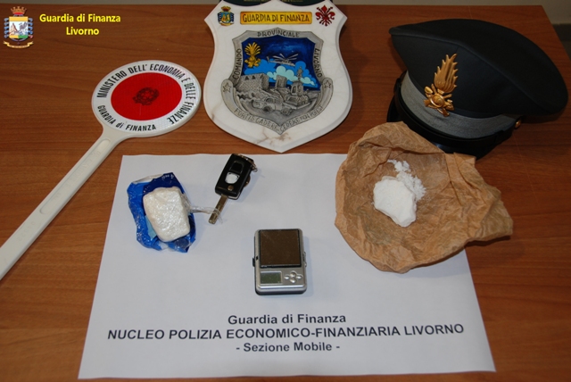 Sabato scorso, 19 maggio, il cane Dely della guardia di finanza ha trovato in un'auto condotta da tre albanesi 57 grammi di cocaina nascosta sotto la sede dell'autoradio, avvolti in un pacchetto di fazzoletti di plastica vuoto. Per questo uno dei tre, X.R. di 34 anni, è stato arrestato e gli altri due denunciati. È avvenuto a Livorno durante un controllo stradale. Dopo questo controllo, è stata fatta una perquisizione nella casa in cui abitano i tre. Trovato il bilancino di precisione e altra cocaina in fase di taglio per lo spaccio. Il 34enne, dopo l'arresto per traffico e detenzione di stupefacente, al momento è stato trasferito ai domiciliari. Denunciati per lo stesso reato gli inquilini.