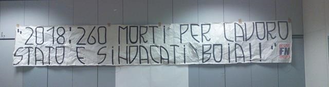 Lo Stato e Cgil, CISL e UIL sono ovviamente complici di quello che sta succedendo, perché chiudono entrambi gli occhi di fronte alla mancanza di sicurezza imperante soprattutto nelle grandi aziende. Non ci stancheremo di ripetere che nel 2018 morire sul lavoro é vergognoso e questa é solo la prima di una lunga serie di azioni.