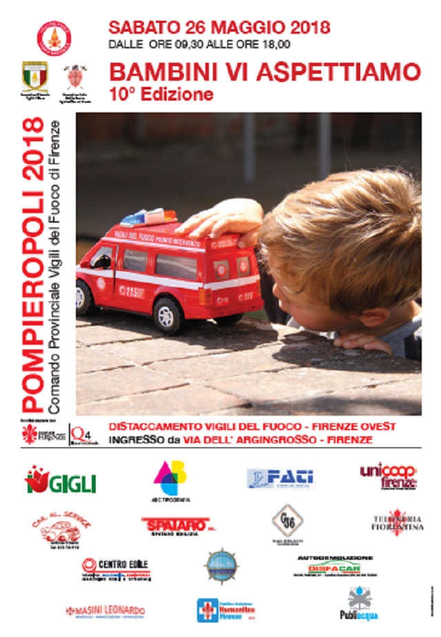 Si terrà sabato 26 Maggio prossimo l’attesissima Manifestazione denominata “Pompieropoli”, presso il Distaccamento VVF Firenze Ovest (Viadotto Indiano), immancabile appuntamento per tutti i bambini e ragazzi della dell’area fiorentina di età compresa tra 3 e 13 anni. Giunta alla 10^ edizione, Pompieropoli è l’occasione grazie alla quale adulti e bambini potranno varcare la soglia del paese dei “Pompieri” di oggi e di ieri, entrando in contatto con le loro attività quotidiane e respirando il clima di disponibilità e attenzione verso i cittadini che da sempre contraddistingue l’operato del Corpo Nazionale dei Vigili del Fuoco.