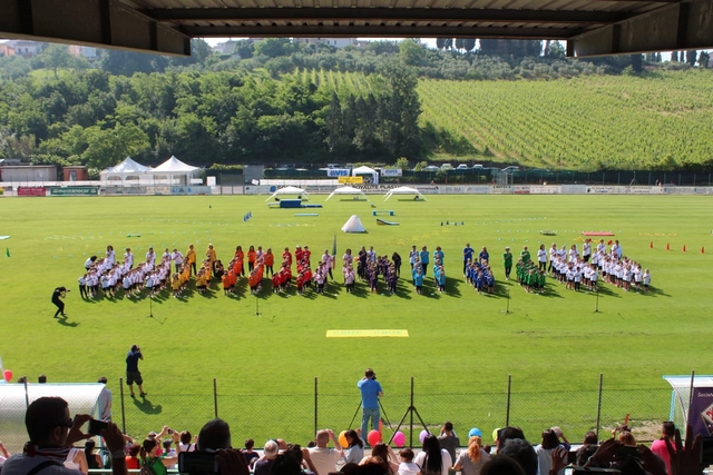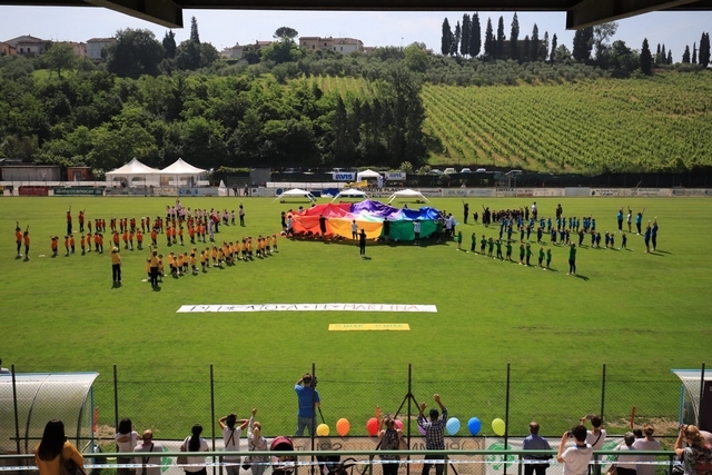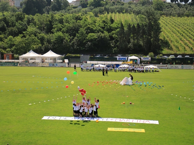 Tanto entusiasmo per la terza edizione delle MiniOlimpiadi a Cerreto, che si è svolta sabato 26 maggio al campo sportivo comunale. Oltre 300 bambini e centinaia di spettatori sugli spalti hanno animato la mattinata. Una manifestazione che è stata dedicata alla piccola Martina Mariotti. Al termine i partecipanti hanno messo in scena un flash mob spettacolare formando un sole colorato di 15 metri di diametro. Una coreografia che ha richiesto mesi di lavoro e che è stata possibile grazie all'impegno delle istruttrici Uisp Erica Cristofori e Sena Bagni, al responsabile dell'Area Giovani della Uisp Empoli Valdelsa Filippo Lebri e alle maestre dell'istituto comprensivo di Cerreto.