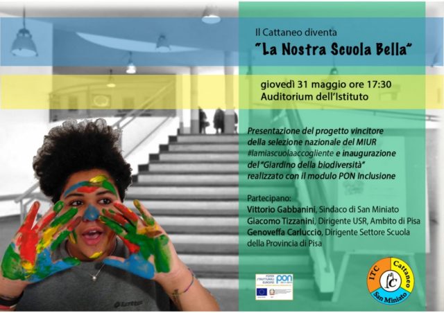 Nella prima fase verrà presentato il progetto “La nostra scuola bella”, un programma di riorganizzazione degli spazi interni dell’Istituto che ha vinto – unica scuola in Toscana, una delle venti in Italia – il bando nazionale del MIUR per le “nuove scuole accoglienti” e che lo stesso ministero finanzierà con un contributo di 50 mila euro. Parteciperanno, oltre al Sindaco di San Miniato, Vittorio Gabbanini, il Provveditore di Pisa Giacomo Tizzanini e la Dirigente della Provincia Genoveffa Carluccio.