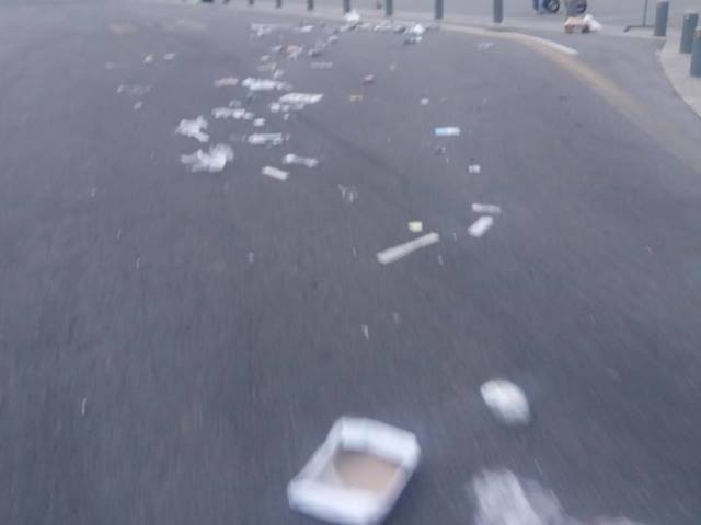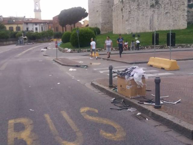 In foto lo stato in cui versava ieri Viale Piave dopo il mercato straordinario. Questo è lo stato (in foto) in cui per ore è rimasto il centro storico di Prato.