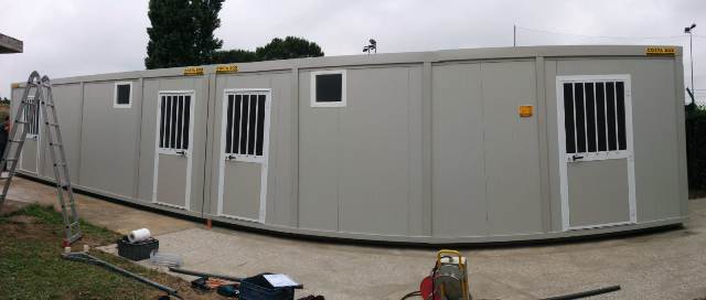 Una struttura prefabbricata che in poche ore è stata resa funzionale costruendo una base, gli scarichi e un piccolo marciapiede.