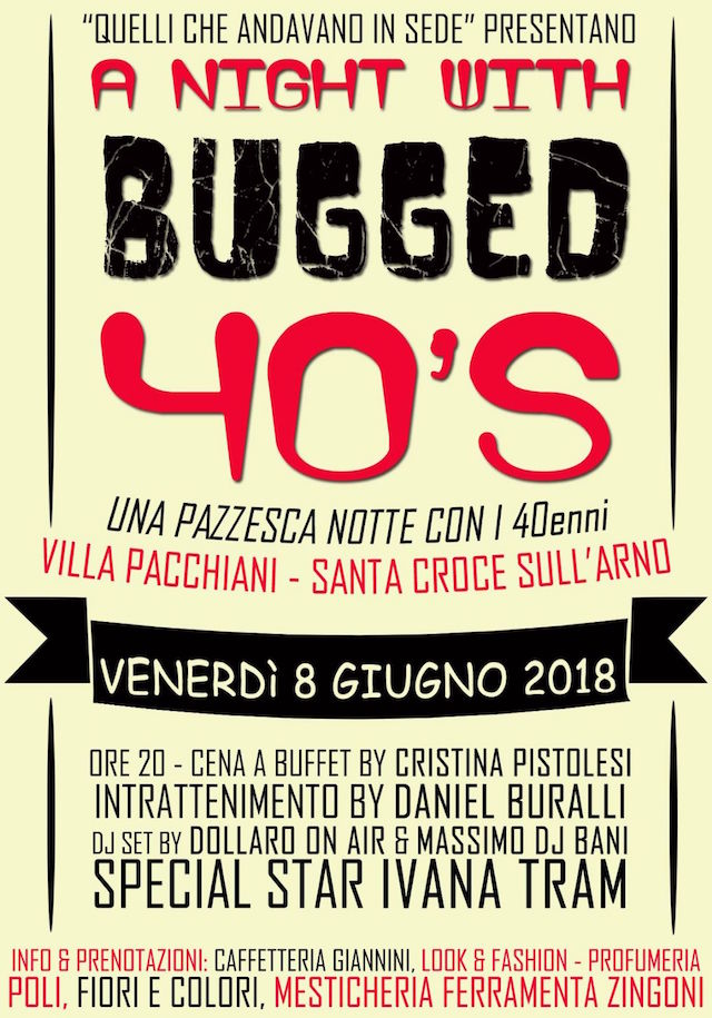 Santa Croce sull'Arno fa festa. L'8 giugno Quelli che andavano in Sede e Comitato Lastre organizzano un evento coi fiocchi a Villa Pacchiani. Già sono trapelate le informazioni su 'A Night With Bugged 80's': musica coi dj set, la cucina di Cristina Pistolesi, lo spettacolo di Daniel Buralli e della drag Ivana Tram e molto altro ancora (qui tutte le info). Ci sono, però, delle novità clamorose.