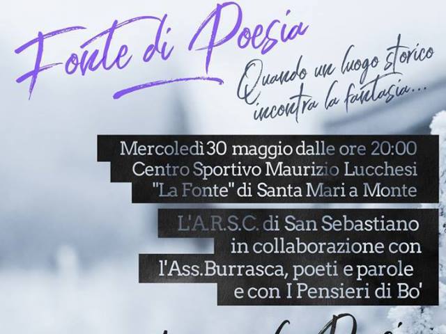 Nella meravigliosa cornice della Fonte (altro angolo ancora da scoprire del nostro Paese) si terrà stasera, 30 maggio, un incontro interamente dedicato alla Poesia.