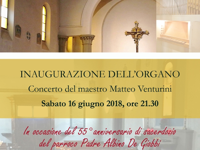 Sabato 16 giugno, alle 21.30, nella Chiesa parrocchiale di San Michele Arcangelo a Roffia con un concerto sarà inaugurato l’organo a canne, strumento tedesco con oltre 300 canne, che il parroco, Padre Albino De Giobbi, ha voluto recentemente donare alla comunità cristiana di Roffia.