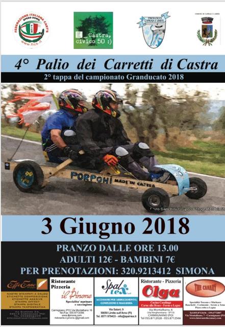 Il percorso di gara, che si snoda nell’abitato di Castra con una esse e quattro tornanti, è pari a 0,9 km e presenta una pendenza media di 8,5% e una massima di 13%. La quota di iscrizione comprensiva del pranzo è pari a 30 euro, per info rivolgersi all’indirizzo mail info@valdelsaracingteam.it . Al momento, risultano iscritti in gara circa 50 carretti, tra cui gli equipaggi dei quattro rioni di Castra: Porponi, Le Case, Pinaccino, Santini.