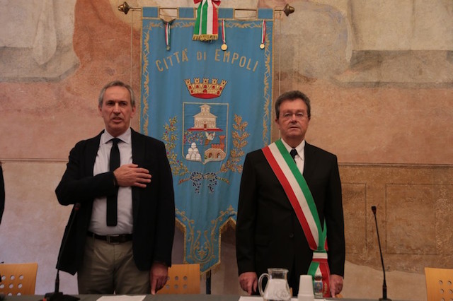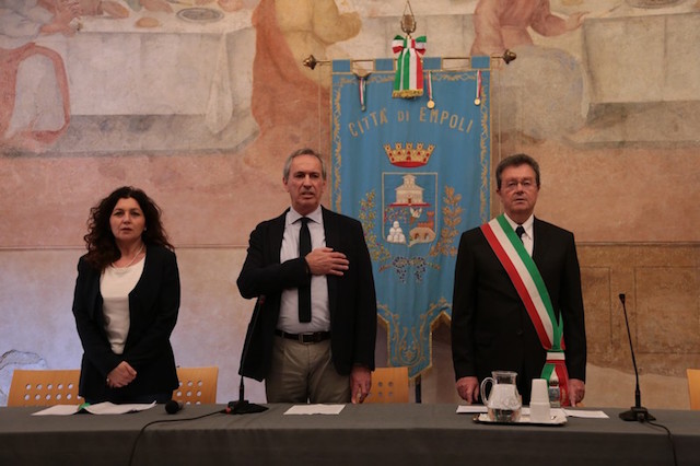 «Sono felice e onorato di poter dire che oggi questa comunità è più ricca, perché nell’ultimo anno si sono aggiunti 87 nuovi cittadini. Proprio nel giorno dell’anniversario della Repubblica Italiana, come amministrazione doniamo a tutti voi una copia della Costituzione. La carta costituzionale non è un simbolo, è l’essenza della nostra Repubblica, del nostro vivere civile e liberi, grazie al sacrificio, fino alla morte di tanti donne e uomini. Questa città, Empoli, ne è consapevole per i cittadini eroi massacrati in piazza 24 Luglio, per il sacrificio dei propri partigiani e per i deportati nei campi di sterminio. Per questo il gonfalone della città di Empoli, lo scorso 17 gennaio, è stato insignito con la Medaglia d’Oro al Merito Civile per il valoroso comportamento dei suoi cittadini durante la Resistenza. Viva il 2 giugno. Viva l’Italia».