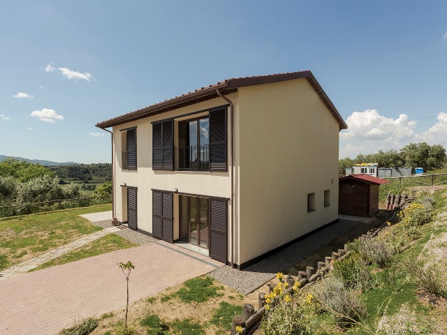 L’abitazione, progettata in chiave green dall’arch. Matteo Pierattini di Officina Abitare e dall’Ing. Andrea Baldini di Fabbrica del Sole, è un edificio a zero emissioni (NZEB) costituito da una struttura in legno lamellare dalle eccellenti proprietà antisismiche, isolata mediante l’impiego di balle di paglia e corredata da un impianto di ventilazione meccanica controllata termodinamica MyDATEC per massimizzare il comfort abitativo e l’efficienza energetica.
