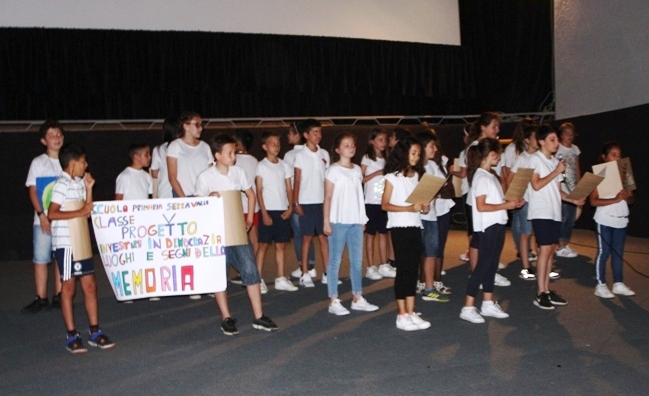 “Luoghi e Segni della Memoria” per i bambini delle primarie che questa mattina, lunedì 4 giugno, al cinema La Perla di Empoli, hanno dato avvio alle doppia giornata conclusiva del progetto ‘Investire in democrazia’, che vede impegnati il Comune di Empoli e le scuole da 20 anni.