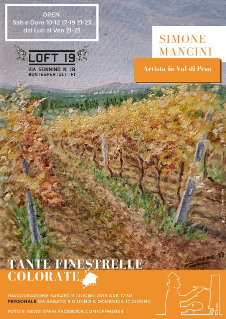 'Tante finestrelle colorate', è il titolo della personale di Simone Mancini - "Artista in Val di Pesa", come gli piace definirsi, per sottolineare il legame che unisce la sua pittura, alla zona in cui è nato, cresciuto e dove ancora risiede.