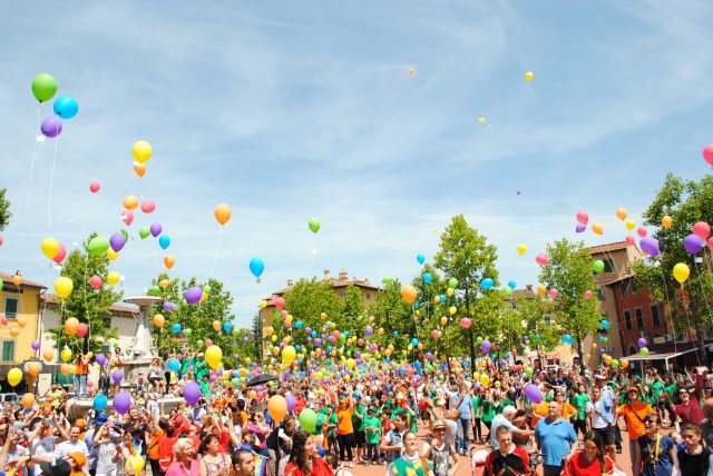 «La Festa della Pace è un evento atteso dalla cittadinanza – dice il sindaco Dario Carmassi – In particolare dai ragazzi delle scuole che in questa occasione celebrano, se non ufficialmente almeno ufficiosamente, il termine dell’anno scolastico. Non si tratta però di una “semplice” festa di fine anno. Nel 1993, anno in cui nacque, l’Italia si trovava per la prima volta dopo decenni coinvolta in o vicina a guerre (quella del Golfo, quella in Bosnia) e l’amministrazione di allora sentì la necessità di dare un segnale “dal basso”. Nacque così una giornata che voleva e vuole celebrare la Pace, tramite l’incontro, il gioco, la collaborazione, i colori. Da quel 1993 la Festa si è radicata, ha acquisito i suoi rituali, come il lancio dei palloncini. Oggi è un evento che inizia dalla mattina presto e che termina nel pomeriggio, nel parco della Villa comunale. E che continua a tenere alto il valore della Pace».