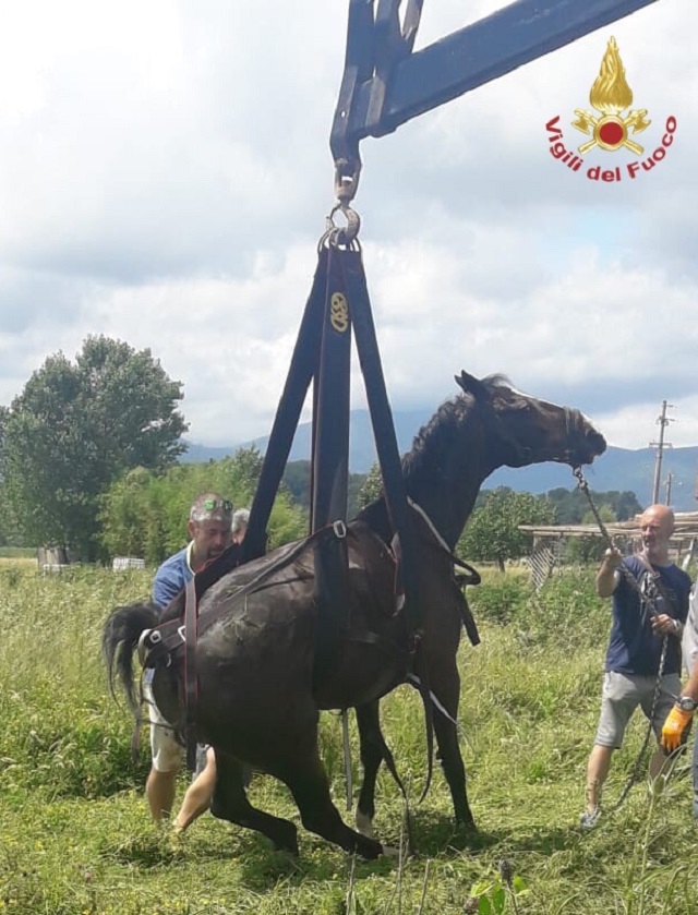 Un cavallo è caduto in un piccolo fossato non riuscendo più ad uscirne nel comune di Santa Maria a Monte, presso il centro ippico Il Pesco, intorno alle ore 12. Sul posto sono intervenuti i vigili del fuoco di Castelfranco. Con l’ausilio di un trattore e delle imbracature fatte giungere appositamente dal comando di Lucca il cavallo è stato fatto uscire dal fosso. Attualmente l'animale è assistito da un veterinario che ha coordinato tutte le operazioni di recupero.