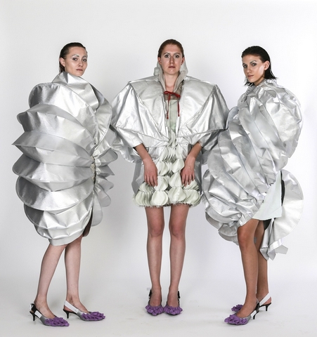 Gli studenti del corso di Fashion Technology hanno proposto invece un Omaggio a Cristobal Balenciaga, storico designer e innovatore nella moda (soprattutto per quel che riguarda forme e volumi) di cui ricorrono gli 80 anni dalla fondazione dell'atelier parigino. Per celebrare lo stilista e rendere omaggio alla sua creatività, gli allievi del corso hanno presentato una collezione reinterpretando in tessuti di canapa biologica un capo storico della maison utilizzando l'ultraviolet, colore pantone 2018 con trattamenti di colorazione sostenibile.