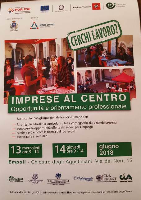 Cini: «La manifestazione, ci tengo a sottolinearlo è unica a livello regionale. La presenza del Comune di Empoli è parte attiva fin dal 2014 e con un ruolo di primo piano anche nella ricerca di aziende che partecipino. Siamo al secondo anno di Imprese al Centro, nata come 'Bussola del Lavoro' ormai quasi cinque anni fa. Saranno due giorni in cui si alterneranno imprese diverse. È importante essere presenti per lasciare il proprio curriculum vitae, ma anche per poter partecipare a seminari e workshop. Una buona pratica che continuerà anche dopo l'evento».