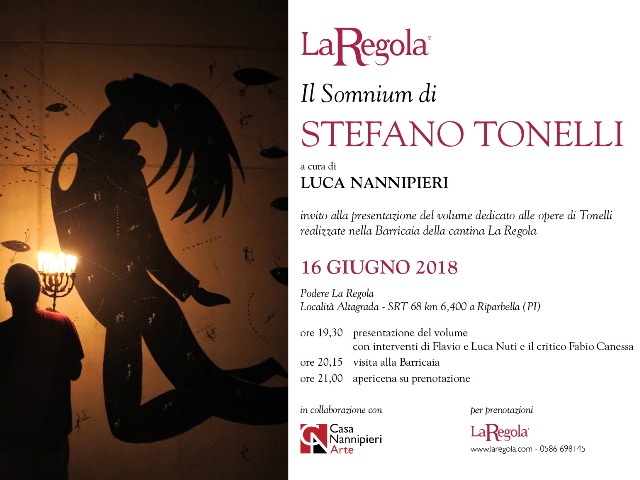 Oggi Il Somnium di Stefano Tonelli diventa un libro a cura di Luca Nannipieri. È così che alla Cantina La Regola dei fratelli Luca e Flavio Nuti si torna a parlare di arte in modo progettuale e contemporaneo. L’appuntamento per gli amanti del binomio arte e vino è per sabato 16 giugno 2018 (a partire dalle 19.30).