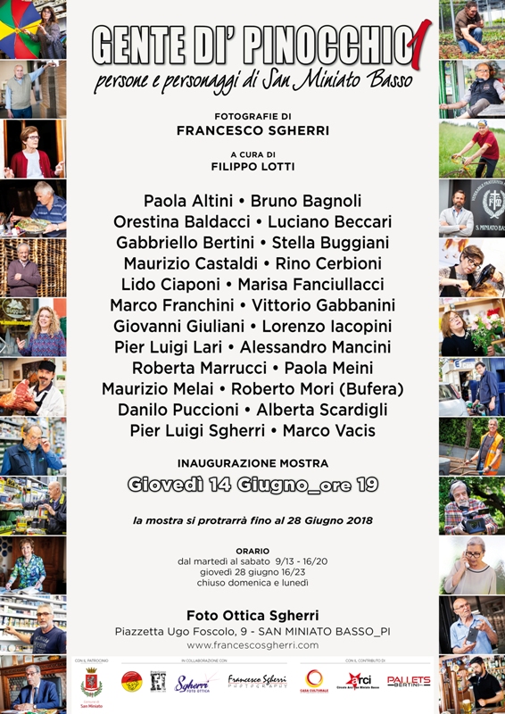 La mostra ideata da Filippo Lotti, curatore d’arte ponteaegolese, e realizzata grazie al prezioso contributo della Casa Culturale San Miniato Basso, del Circolo ARCI di San Miniato Basso e Pallets Bertini srl, è composta di ventiquattro foto e sarà visitabile da giovedì 14 giugno 2018 (inaugurazione alle ore 19) presso il negozio Foto Ottica Sgherri (Piazzetta Ugo Foscolo 9, San Miniato Basso); esposizione che fa parte degli eventi all’interno dell’XI edizione di Pinocchio in Strada.