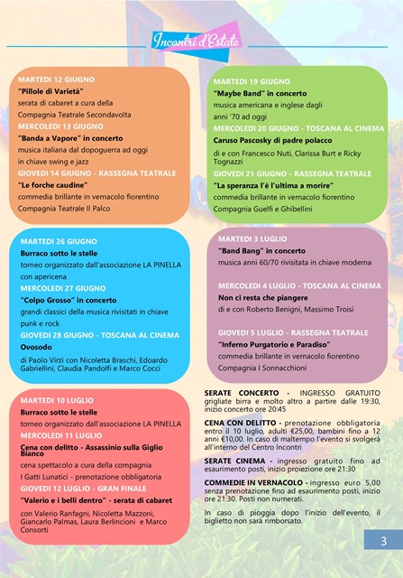 Programma di Incontri d'estate. Dal 12 giugno al 12 luglio.