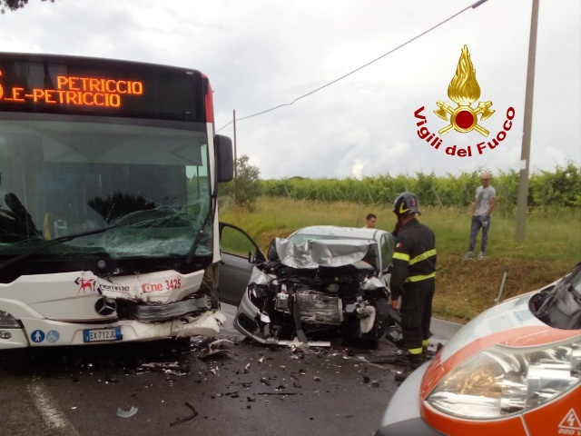 Si è verificato uno scontro frontale tra un bus e un'auto oggi, mercoledì 13 giugno, a Casetta, frazione di Castelnuovo Berardenga. Il conducente della auto è stato estratto dalla squadra dei vigili del fuoco di Siena per poi essere affidato alle cure del personale sanitario del 118.