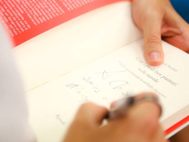 Una sorpresa ha dato il via alla presentazione della raccolta “Con i piedi ben piantati sulle nuvole” edita da Rizzoli: l'autore, direttore artistico del festival, è stato premiato dall'assessore regionale Vincenzo Ceccarelli con la medaglia Pegaso della Giunta della Regione Toscana, per l'attaccamento dimostrato alla città di Arezzo e alla regione. “Un riconoscimento al talento di Andrea Scanzi – ha detto Ceccarelli – che attraverso i suoi libri riesce a dar risalto alle bellezze e alle peculiarità della nostra terra, contibuendo a diffonderne il valore”. Dopo l'introduzione del coordinatore del festival Marco Meacci, la giornalista Chiara Calcagno ha approfondito assieme a Scanzi i contenuti del libro, istantanee di luoghi e personaggi poco conosciuti ma meritevoli di attenzione. Storie “piccole” ma straordinarie, partendo da Arezzo, su e giù per l'Italia. In moto, in treno, in auto. “Alcuni luoghi – ha detto lo scrittore aretino - sono stazioni di servizio esistenziali. Come la mia città: qui mi ricarico, qui sono pienamente me stesso. È un luogo di cui ho bisogno, da cui ho ricevuto molto. E mi sento di ricambiare, celebrandola ogni volta che posso. Vorrei che Arezzo fosse famosa nel mondo per la sua bellezza, molti ospiti del festival arrivano qui e dicono 'non sapevo che questa città fosse così bella'. È anche colpa nostra, degli aretini: tendiamo a dimenticare quanto sia bella”. Ma le stazioni di servizio esistenziali, per Scanzi, sono anche altrove. “Il viaggio – ha spiegato – è anzitutto evasione. Ti fa lasciare alle spalle tutte le ferite. Ma ci sono luoghi in cui ritrovo me stesso, come le Langhe. Infine, aggiungo, il viaggio è curiosità”. Un'ora filata di parole, di ricordi e di sogni, che sono il propellente dell'esistenza. “Mantenere viva la fiammella dei propri desideri aiuta sempre. Poi nella vita occorre anche fortuna. Io ho avuto quella di incontrare Edmondo Berselli, un maestro per me, a cui il libro è dedicato”. E tra le pagine, gli episodi piccola straordinarietà si rincorrono, dal commovente racconto del ragazzo che ha ricostruito la sua vita partendo dal lavoro in autogrill, passando per il telone cucito in fretta e furia dalle anziane di un paese irpino, diventato – all'ultimo momento - lo schermo di uno spettacolo teatrale di Scanzi. Applausi, autografi, selfie e qualche lacrima. Arezzo ha accolto così, con grandissimo affetto, il debutto casalingo del nuovo libro del giornalista e scrittore.