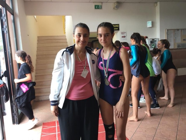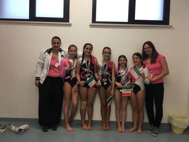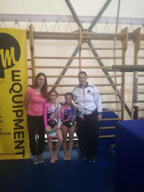La squadra senior di mini4 composta da Gaia Sortino e Ilenia Del Picchia seconde con Ilenia campionessa nazionale al volteggio e Gaia vice alle parallele.