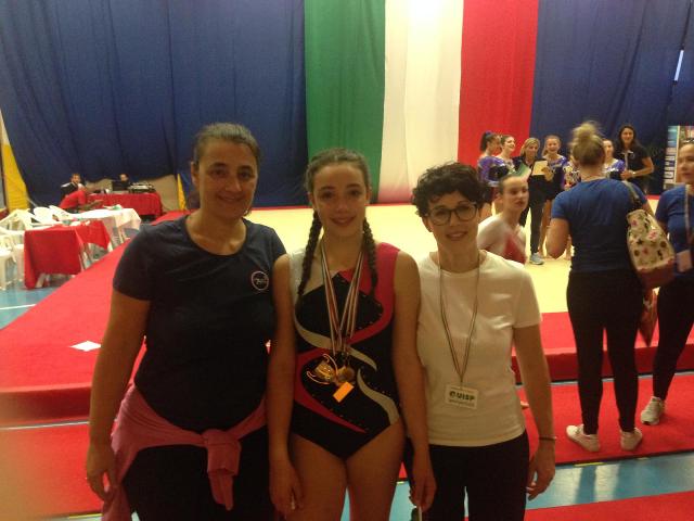 La squadra junior sempre di mini4 con Martina Bagnoli, Daniela Gambino e Maddalena Andreuccetti si piazza quinta, con Maddalena 3 alla trave.