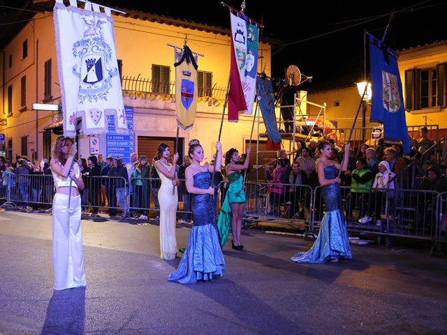 Conto alla rovescia a Carmignano per la presentazione dei temi del teatro in strada della Festa di San Michele 2018. Sabato 16 giugno, alle 21, nei locali della Misericordia di Carmignano (largo della Misericordia 1) i quattro rioni del paese – Bianco, Celeste, Giallo e Verde – sveleranno in “forma criptica” (cioè attraverso un testo che rivela alcuni indizi) qual è il tema della rappresentazione che metteranno in scena in piazza in occasione della prossima edizione della festa. L’argomento deve essere in maniera obbligatoria legato a Carmignano: alla sua storia, ai suoi luoghi, ai suoi personaggi. I rioni sono già al lavoro da mesi per la preparazione della sfilata, ma il suo tema rimane segreto fino al momento della presentazione ufficiale, sabato 16 giugno appunto.