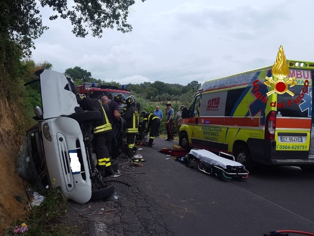 Una 50enne di Manciano (Grosseto) è morta in seguito a uno scontro frontale tra due auto avvenuto tra Manciano e Montemerano nel pomeriggio di oggi. Sul posto carabinieri, i vigili del fuoco che hanno estratto conducenti e passeggeri, i soccorsi inviati dal 118. La madre della 50enne è anch'essa in gravi condizioni di salute.