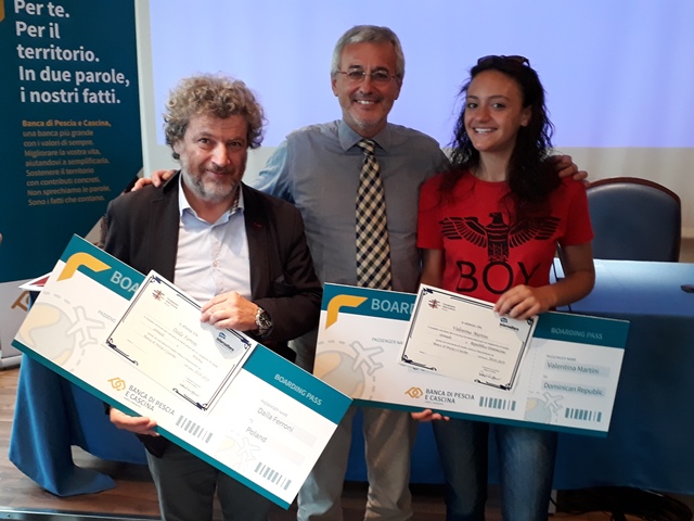 All’appello hanno risposto tanti adolescenti e le beneficiarie delle borse sono Dalia Ferroni di Lucca, studentessa dell’Istituto scolastico Brancoli Busdraghi di Lucca, che trascorrerà un anno scolastico in Polonia, e Valentina Martini di Ponsacco, studentessa dell’Istituto scolastico Montale di Pontedera, che trascorrerà un anno in Repubblica Dominicana.