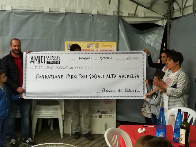 Grande partecipazione a Poggibonsi per l’evento benefico che ha visto protagonisti per la quinta volta gli AMICI DI ALESSIO, un gruppo di amici uniti dall’affetto e dal ricordo di Alessio Gori Savellini, un giovane imprenditore poggibonsese deceduto prematuramente nel 2014. Gli AMICI DI ALESSIO, come ogni anno da allora, hanno voluto organizzare un torneo di calcetto e a seguire una cena, il cui incasso è stato devoluto interamente in beneficienza a due realtà del territorio: la struttura per disabili "Il Mulino" della Fondazione Territori Sociali Alta Valdelsa e la Casa Famiglia di Cedda, gestita dall'Associazione Papa Giovanni XXIII.