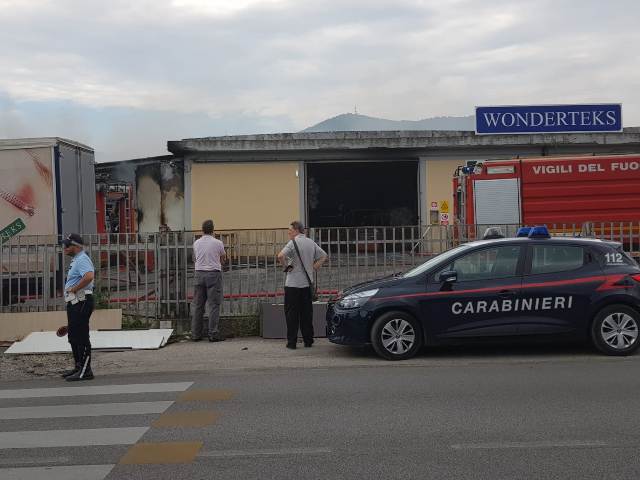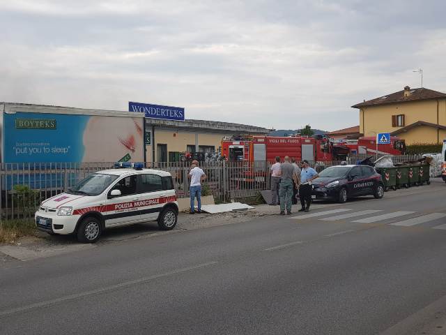Un incendio in un'azienda di Santonuovo (Quarrata) ha chiamato all'azione i vigili del fuoco di Pistoia e Prato nella mattina di oggi, lunedì 18 giugno. Un corto circuito avrebbe fatto scattare le fiamme in un macchinario della ditta produttrice di materassi. Sul posto in viale Europa carabinieri e polizia municipale, oltre a un'ambulanza della Misericordia di Montale. Non ci sarebbero feriti ma alcuni intossicati. I primi interventi di soccorso sono stati effettuati proprio dagli operai, che hanno tentato di domare le fiamme con gli estintori a disposizione dell'azienda. Sono andati distrutti molti rotoli di tessuto, in più il tetto ha subito danni consistenti (la copertura è in eternit).