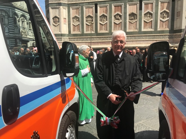 Sono stati inaugurati ieri, domenica 17 giugno 2018, in piazza Duomo i nuovi automezzi della Misericordia di Firenze: 3 nuove ambulanze allestite dalla ditta Alessi & Becagli e il mezzo attrezzato e dotato di sollevatore per il trasporto di persone disabili donato dalla ACF Fiorentina. Alla presenza del Provveditore dell’Arciconfraternita, Giovangualberto Basetti Sani, e dei Capi di guardia, i nuovi automezzi sono stati benedetti di fronte ai nuovi ascritti.