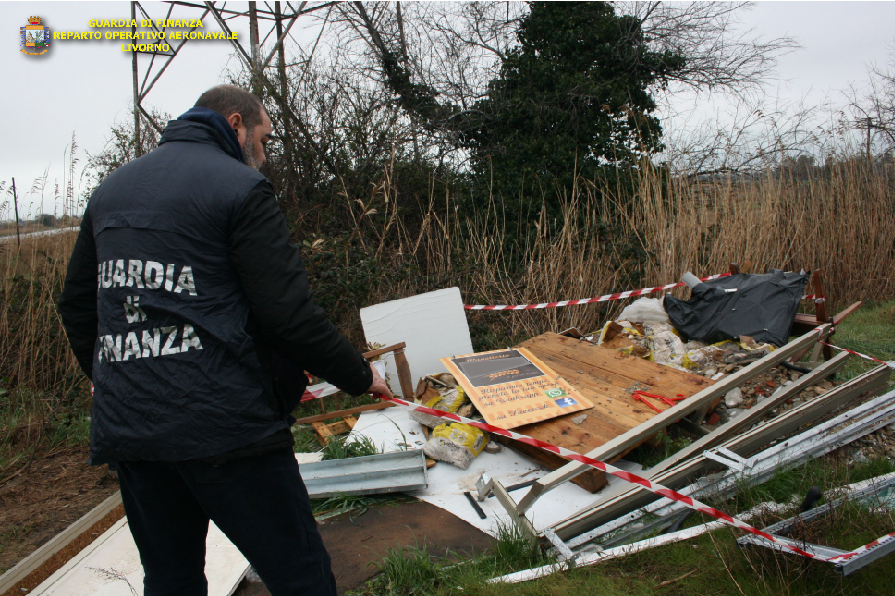 P.S., 57 anni di Firenze, stava scaricando i rifiuti da un furgone gettandoli ai lati della strada. I finanzieri lo hanno visto e hanno sequestrato gli oltre 150 kg di materiale edile vario, pannelli in legno, porte e pezzi di cabine dello stabilimento balneare. L'uomo è stato denunciato per gestione di rifiuti non autorizzata e per il reato di invasione di terreni ed edifici.