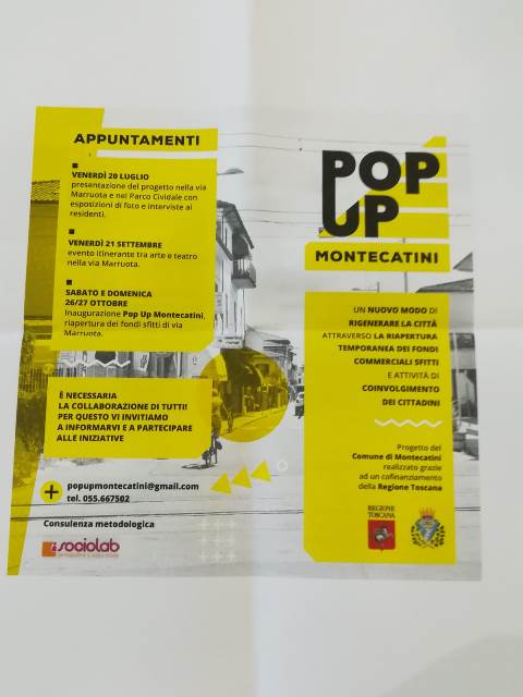 Prende il via la nuova edizione di Pop Up a Montecatini Terme, progetto promosso dal Comune e co-finanziato dalla Regione Toscana con l’obiettivo di rivitalizzare il quartiere del “Sottoverga” nei pressi della stazione attraverso la riapertura di fondi sfitti e il coinvolgimento di tutte le risorse esistenti, dai residenti, ai commercianti, alle associazioni.
