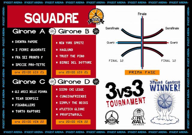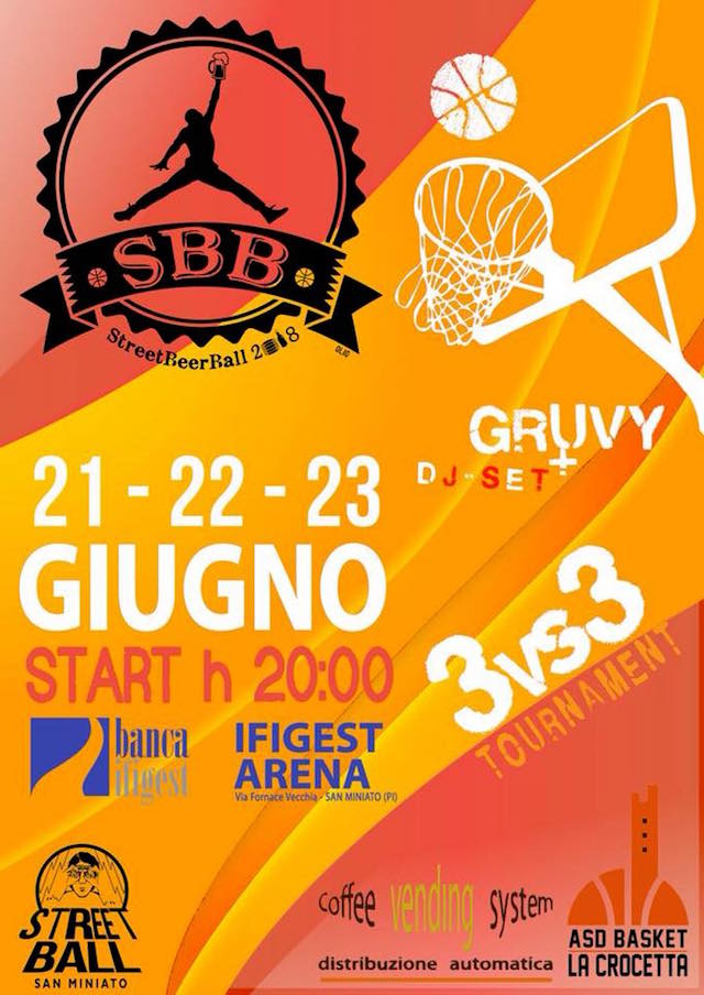 ASD Basket la Crocetta San Miniato organizza la seconda edizione del torneo di streetball 3X3 denominato "SBB-StreetBeerBall" nei giorni 21-22-23 giugno a partire dalle ore 20:00 presso Ifigest Arena di via Fornace Vecchia, San Miniato. Nelle foto sotto tutte le indicazioni e il sorteggio del torneo.