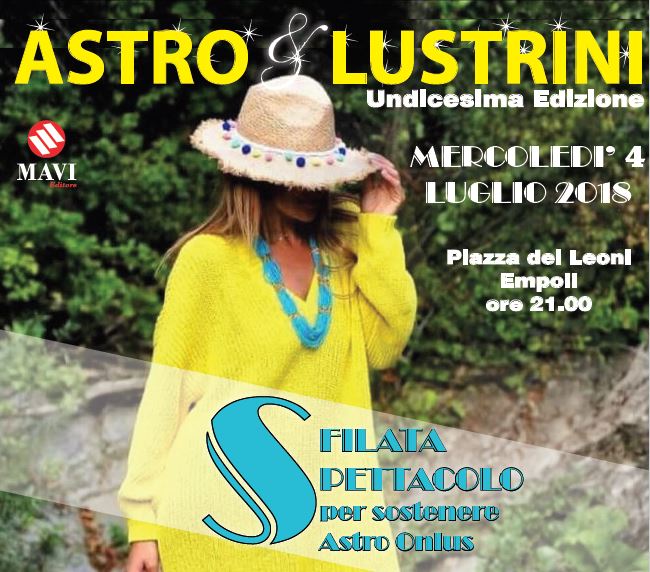 Mercoledì 4 luglio alle 21 in piazza dei Leoni a Empoli si terrà la kermesse Astro & Lustrini arrivata alla sua undicesima edizione, che mette insieme solidarietà e moda. Torna per l’11 anno l’evento organizzato dalla associazione Astro di Empoli, che coniuga la lotta al cancro con la moda. L’evento deve il suo nome all’Associazione Astro che si impegna nel sostegno terapeutico e riabilitativo in oncologia. L'aiuto per il percorso del malato durante la sua lotta contro il cancro arriva anche attraverso la raccolta fondi di questa sfilata. Un palcoscenico a cielo aperto, nel 'salotto buono' di Empoli, quello della serata di Astro e Lustrini.