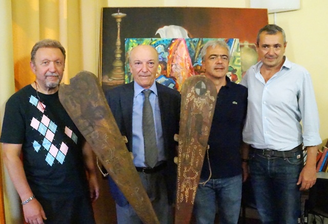 Gioco del Ponte: dopo il targone ligneo da parata di fine ‘700 della magistratura dei Dragoni e la bandiera del’ 700 in seta di Orly raffigurante il cinghiale della magistratura di Sant’Antonio, Pisa ha recuperato altri due reperti. Si tratta di due targoni storici, uno del San Marco del 1785 e l’altro del Sant’Antonio del 1807. «Sono stati ritrovati nelle cantine dell’Abbazia di San Savino a Montione, sospesi per due secoli ad una trave di un soffitto di un locale asciutto e ottimamente areato» racconta Fausto Trivella. «Si tratta di una coppia di “targoni” da combattimento delle squadre impegnate nel Gioco del Ponte del periodo Granducale del XVIII e XIX secolo» spiega Antonio Pucciarelli nella sua descrizione che riportiamo sotto integralmente. L’assessore al patrimonio del Comune di Pisa ringrazia «la famiglia Trivella che ha deciso di metterli a disposizione del Comune». «Li esporremo alla mostra in corso alla Cittadella e durante il corteggio storico del 30 giugno» continua l’assessore alle manifestazioni storiche.