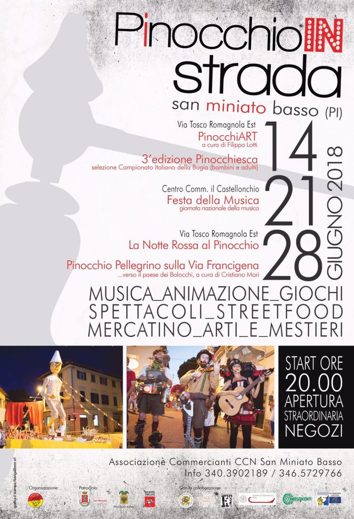 Si alza il sipario sulla seconda serata di Pinocchio in strada, il grande e atteso appuntamento con il divertimento a San Miniato Basso, organizzato dal CCN di San Miniato Basso, in collaborazione con il Comune di San Miniato, l’associazione “Pinocchio a I' Pinocchio”, Fuori Logo e la Fondazione San Miniato Promozione. Domani sera (21 giugno) un secondo giovedì ricco di sorprese: il clou della festa sarà al Castellonchio, dove ci saranno musica e spettacoli di strada che animeranno la serata.
