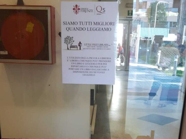 È attivo da qualche giorno presso il giardino Don Renzo Forconi, il giardino di Villa Fabbricotti, la sede del Quartiere 5 ed il giardino Orticoltura, il progetto Little Free Library, casette o scaffali dove i cittadini possono prelevare o lasciare, in modica quantità, libri a fruizione libera. In modo particolare, per quanto riguarda i punti di Villa Fabbricotti e giardino Don Forconi, tra i libri presenti si possono trovare le “collane” della prima e della seconda edizione del progetto “Il libro del Vicino” ideato dal Quartiere 5.
