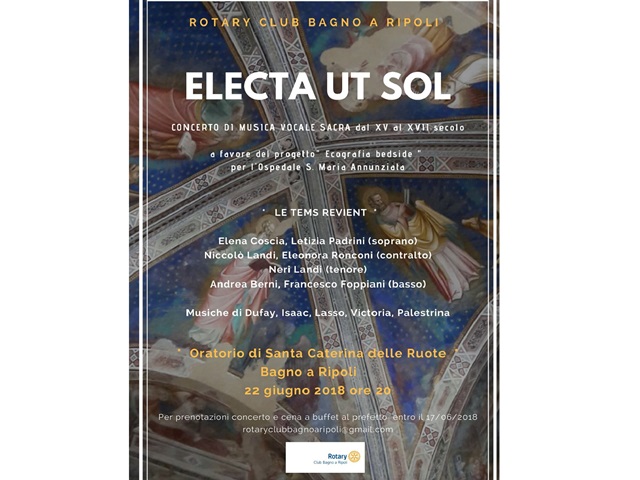 Titolo della serata “Electa ut Sol”, tratto dall'ultima frase dell'ultimo pezzo in programma, dedicato alla Madonna.