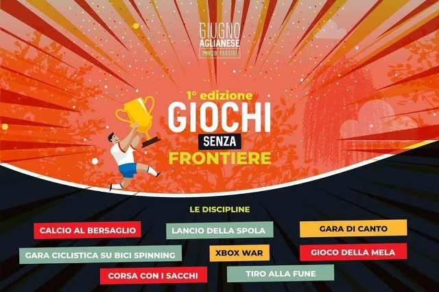 Durante il Giugno Aglianese 2018, ci sarà la prima edizione dei Giochi Senza Frontiere - Agliana edition. Le frazioni di Agliana si sfideranno in una due giorni di discipline di vario tipo, come il tiro alla fune, lo spinning e la corsa dei sacchi, per vincere e battere le frazioni avversarie in una vera e propria sfida campanilista. “ Sarà una festa che coinvolge le rappresentanze di tutto il territorio aglianese - dichiara il direttore artistico del Giugno Aglianese Luca Nesti - una specie di esposizione che vedrà insieme atleti, talenti e semplici partecipanti con lo scopo di rappresentare il proprio pezzetto di terra dove è nato o cresciuto all'insegna del divertimento. Voglio ringraziare fin da adesso tutte le persone che si sono adoperate per realizzare questa prima edizione in particolare Maria Lo Cascio e radio libere Agliana per la complicità”. L’evento si svolgerà nei giorni di sabato 30 giugno e domenica 1 luglio presso il Parco Pertini, nella zona Palco e Stand del giugno aglianese. Sarà un momento di importante partecipazione anche dal punto di vista del tifo, dove tutti i cittadini potranno celebrare e sostenere le proprie squadre nel modo più folkloristico possibile. Qui di seguito le discipline svolte e le squadre che gareggeranno.